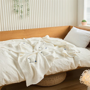 Diese dreidimensional bestickte Decke wird Ihre Kinder begeistern und ist ideal zum Spielen oder für ein Nickerchen auf dem Sofa. Sie ist ganzjährig einsetzbar und besteht aus weicher, atmungsaktiver reiner Baumwolle, die sanft zu empfindlicher Haut ist. Die verspielten Cartoon-Designs sind in Hellrosa, Weiß, Blau, Fleischrosa, Grau und Kurkuma erhältlich und messen 75 x 100 cm. Diese gemütliche und unterhaltsame Decke hält Kinder warm und gemütlich und verleiht jedem Kinderzimmer eine charmante Note.
