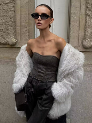 Mit diesem warmen Dreiviertelmantel aus weichem Kunstfell können Sie bequem und stilvoll ausgehen. Bei kühlerem Wetter sorgen die entspannte Silhouette und die regulären Ärmel für Komfort, ohne auf Stil zu verzichten. Dieser Mantel passt sowohl zu eleganten als auch zu lässigen Outfits und ist ideal für Street-Hipster-Looks mit amerikanischem und europäischem Flair. Er ist ein vielseitiges Must-have für Ihre Garderobe, das Wärme und Stil verleiht. Erhältlich in Weiß und den Größen XS bis L.