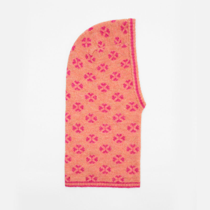 Este adorable pasamontañas de lana tejida es ideal para las aventuras invernales, ya que te mantiene abrigado y te hace destacar. Hecho de lana suave y texturizada en un bonito color naranja-rosa, se ajusta perfectamente y tiene una corona en forma de cúpula para máxima calidez y comodidad. Esta prenda adaptable de 40 cm x 20 cm combina un toque divertido con una práctica protección contra el frío, lo que la convierte en una excelente opción tanto para el uso diario como para actividades al aire libre.