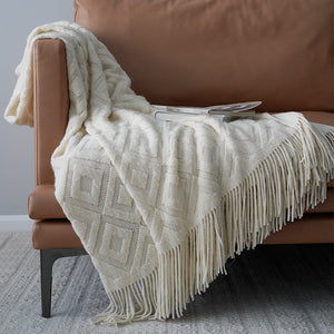 Tämä pehmeästä ja kestävästä akryylikuidusta valmistettu jacquard-neulottu peitto tuo lämpöä ja tekstuuria makuuhuoneeseesi. Siinä on hienostunut palttina, se on tehty mukavuutta ajatellen syksyllä ja talvella, ja sitä on saatavana rauhoittavissa väreissä, kuten harmaanvihreänä, kamelinpunaisena ja beigenä. 720 gramman painollaan se on mukava ja kevyt, joten se on ihanteellinen sohvakerrokseksi tai sängynpeitoksi hienostuneeseen vuodenaikojen mukavuuteen.