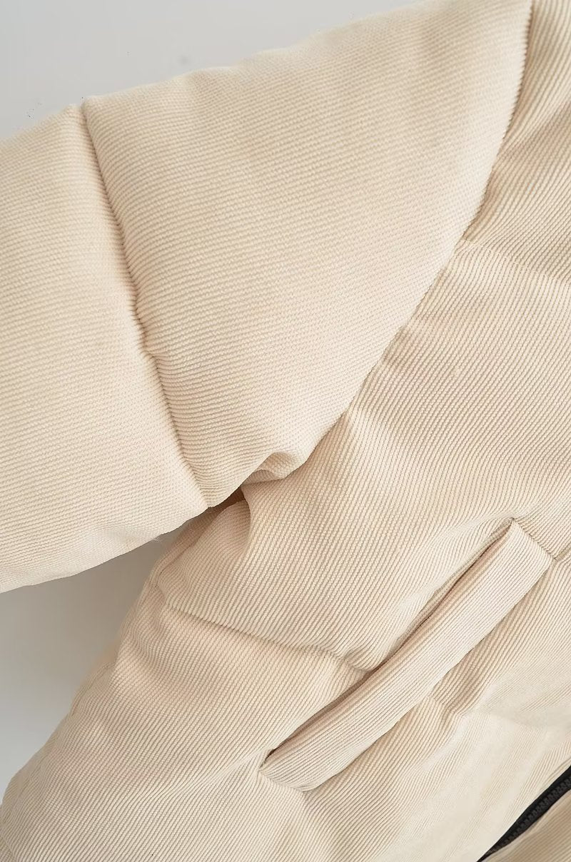 Ce manteau ample en coton, doté d'un col montant pratique et d'une fermeture éclair sur le devant pour un enfilage facile, vous gardera au chaud et à l'aise cet hiver. Ses manches longues et sa coupe mi-longue offrent chaleur et confort, tandis que son cordon de serrage ajoute une touche d'élégance et de confort. Léger, isolant et fabriqué en fibre de polyester robuste, ce manteau est idéal au quotidien. Son beige polyvalent s'accorde avec toutes les tenues pour un look hivernal décontracté et élégant.