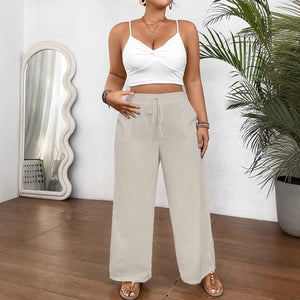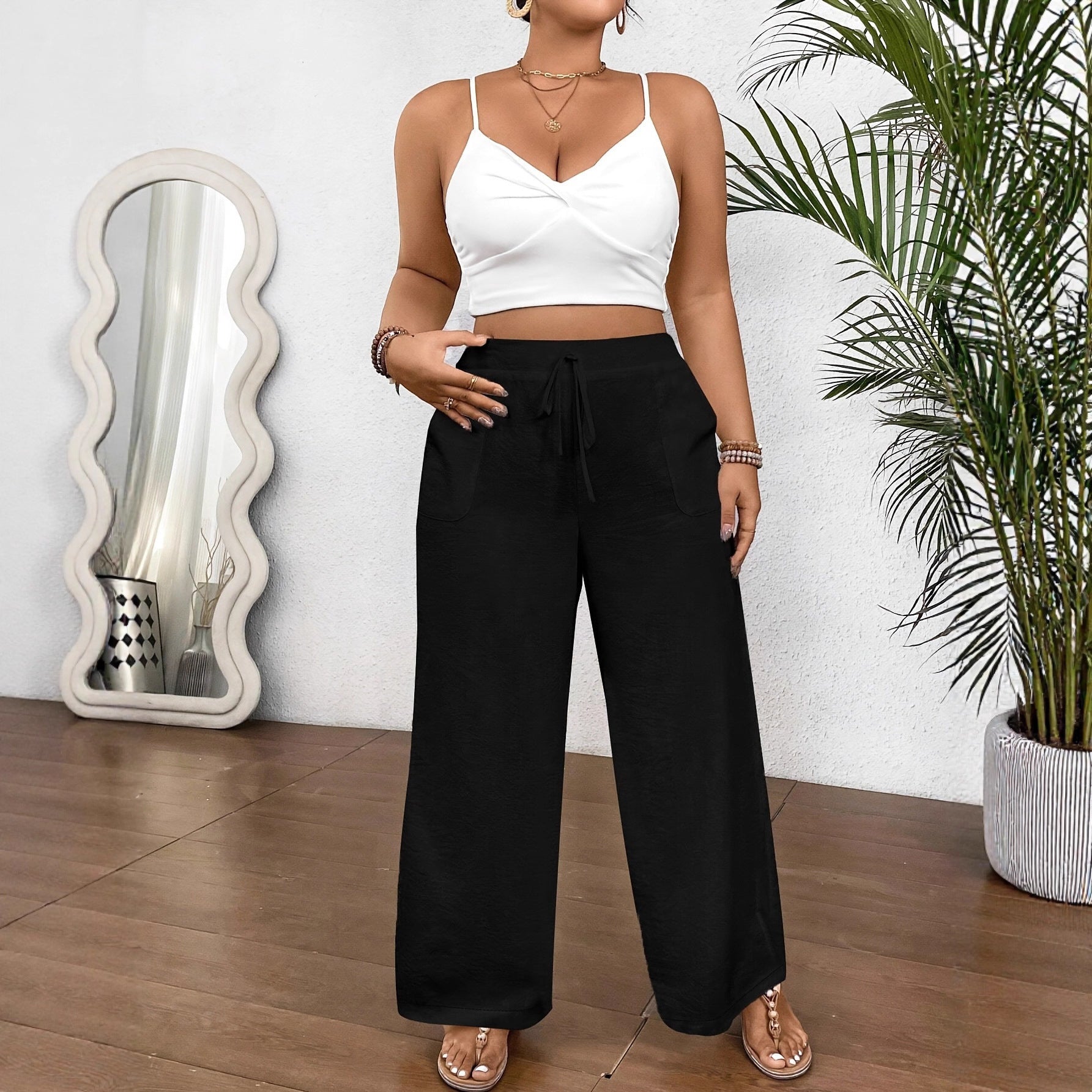 Questi pantaloni da donna a gamba larga con coulisse offrono il massimo del comfort e uno stile casual. Sono ideali per il tempo libero o per un abbigliamento casual perché sono realizzati in morbido poliestere, hanno comode tasche e vestono larghi. Le versatili tonalità kaki e nero li rendono facili da abbinare a qualsiasi top, e la coulisse regolabile in vita garantisce una vestibilità personalizzata. Questi pantaloni fondono un'eleganza moderna e casual con la funzionalità, rendendoli perfetti per l'uso quotidiano.