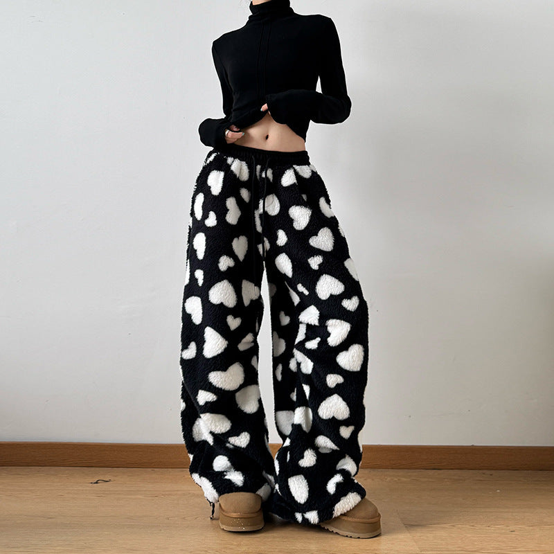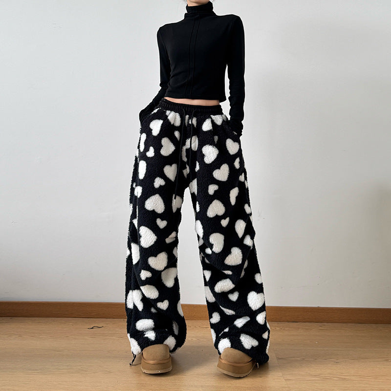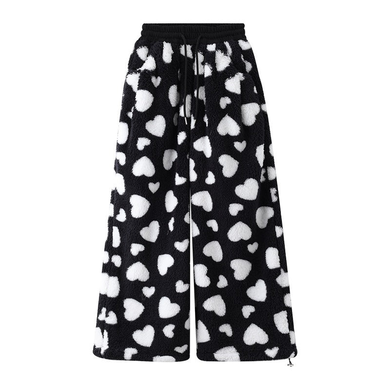 Questi pantaloni jogger da donna in lana d'agnello, comodi e alla moda, ti terranno al caldo. Offrono calore e comfort nelle giornate fredde grazie al tessuto morbido e spesso. La vestibilità ampia garantisce libertà di movimento e il fantasioso motivo a pois aggiunge un tocco divertente e rilassato. Questi pantaloni jogger neri uniscono funzionalità a un design classico ed elegante, rendendoli ideali per incontri rilassanti e informali o per le calde passeggiate invernali.