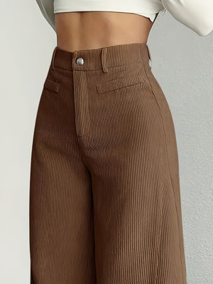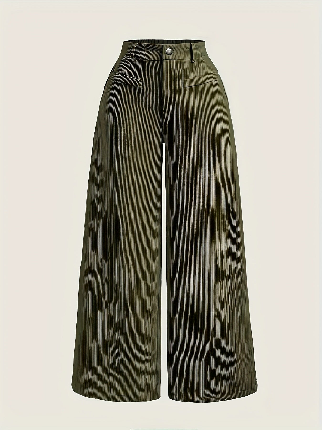 Questi pantaloni a vita alta e gamba larga con righe verticali per un effetto elegante e slanciato aggiungeranno un tocco di stile al tuo guardaroba da pendolare. Hanno una silhouette raffinata e una vestibilità comoda e valorizzante grazie alla realizzazione in morbido poliestere microelastico. I colori matcha, nero, marrone scuro e albicocca li rendono facili da abbinare a qualsiasi look, e i delicati bottoni aggiungono un tocco sofisticato. Questi pantaloni uniscono stile, comfort e vestibilità per tutto il giorno, rendendoli ideali sia per il lavoro che per le occasioni casual.
