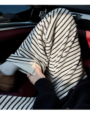 Girls' Wide-Leg Striped Knitted Pants