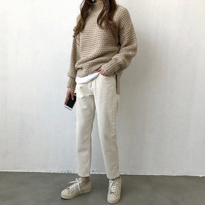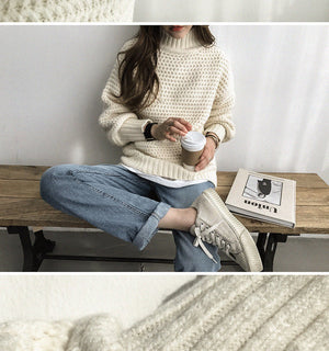Half High Neck Thick Knit Sweater for Women