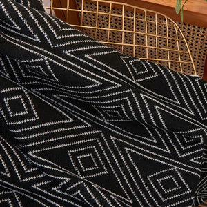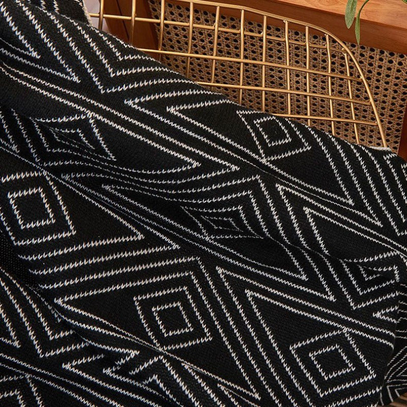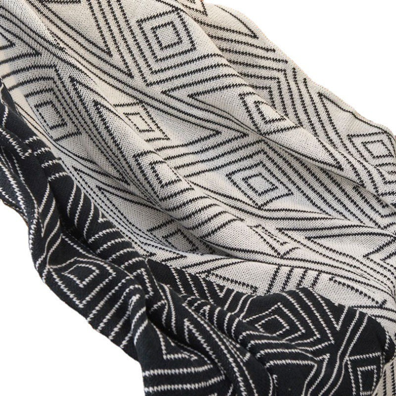 This multipurpose knit blanket will keep you cozy whether you're lounging on the couch or taking office naps. Because it is made of soft acrylic, it is comfortable and lightweight, making it perfect for year-round use. With an upgraded cashmere option for added softness, it has a classic black-and-white design on one side and a patterned design on the other. It comes in sizes 100×130, 110×150, and 130×170 cm. Ideal for staying warm in any situation without sacrificing style