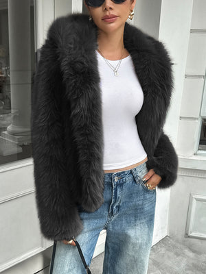 This long-sleeved, soft fleece coat, inspired by casual Japanese and Korean fashion, will transport you to a state of cozy elegance. It promises warmth without compromising comfort thanks to its incredibly thick polyester construction and soft faux fur collar. Its non-ironing design guarantees effortless wear, and its loose fit and traditional long sleeves make it ideal for layering. This adaptable coat, which comes in pink, coffee, apricot, and black, adds flair and coziness to your regular outfit