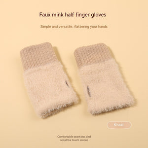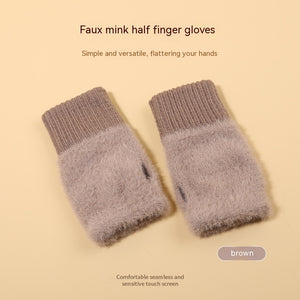 These cozy knitted fingerless gloves are ideal for winter comfort and convenience because they keep your fingers free. Made from a plush mink-shaped jacquard fabric, they provide exceptional warmth and a plush feel without limiting mobility. Their fashionable half-finger design combines functionality with a stylish winter aesthetic, making it perfect for driving, working, or using your phone on chilly days. These gloves, which come in pink, khaki, black, white, brown, purple, and dark blue, add style and functionality to your seasonal wardrobe