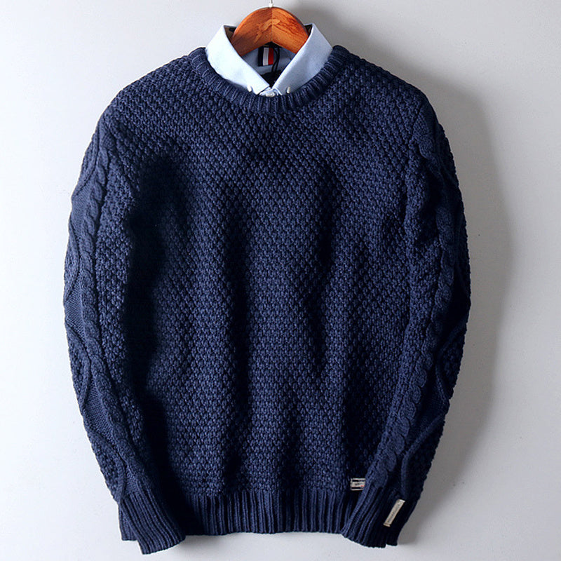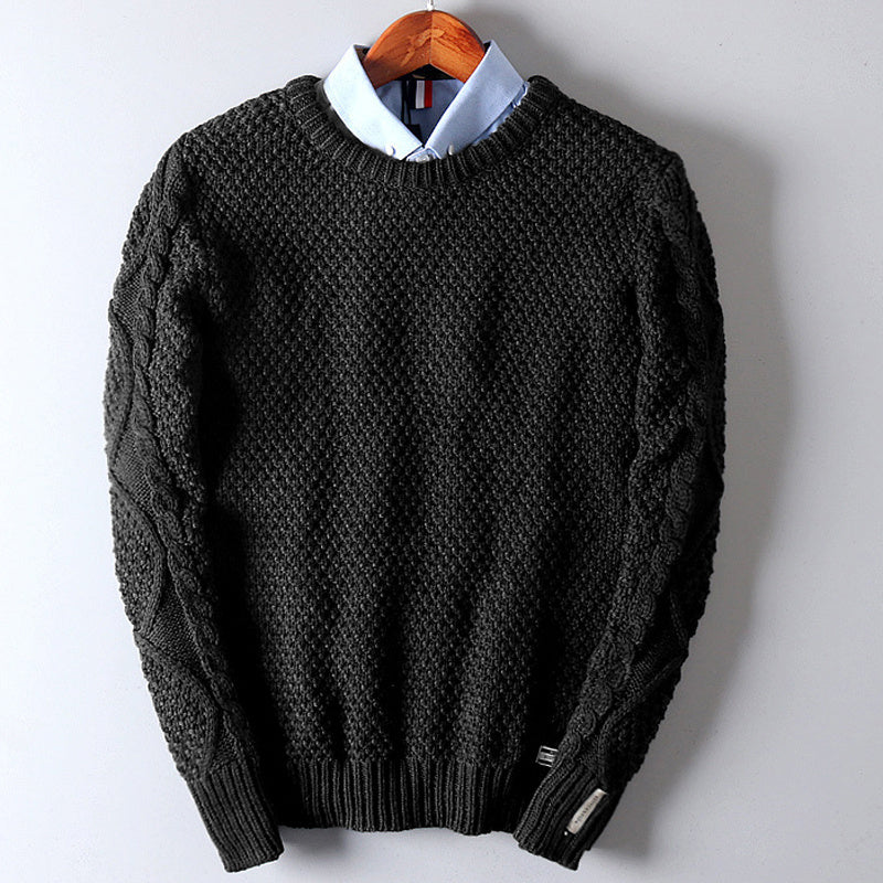 This men's round neck twist sweater is the ideal combination of style and functionality to elevate your casual look. It provides long-lasting warmth and comfort for cool-weather days because it is made of soft, long-lasting chemical fiber. It is perfect for both smart and casual looks because of its sophisticated twist-knit texture and solid color design. This adaptable bottoming sweater, which comes in navy blue, light grey, and black grey, looks great with jeans or pants for a classy daily ensemble.