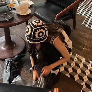 This vintage knit fisherman hat will add a touch of vintage charm. Featuring delicate floral patterns and a breathable hollow design, it provides a stylish, lightweight fit while maintaining your comfort. Its timeless black and navy blue hues guarantee that it goes well with any ensemble, and its dome-shaped, brimless turban design makes it adaptable for daily use