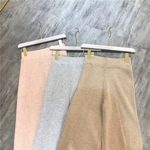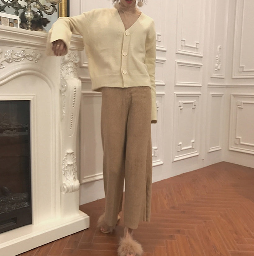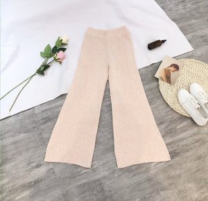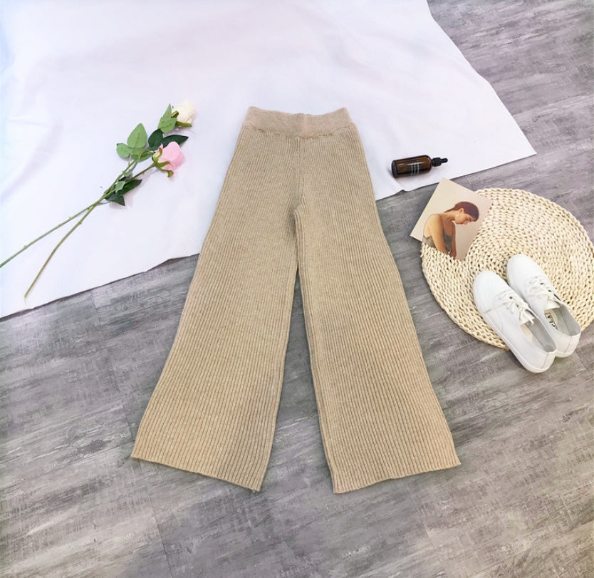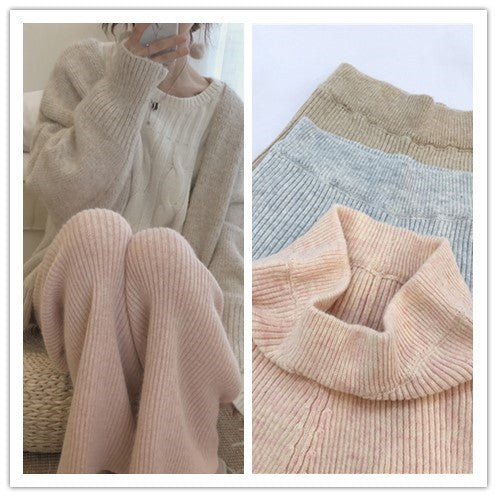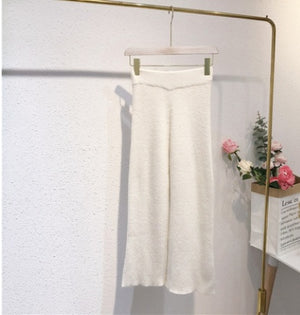 These wide-leg, high-waisted pants made of a soft blend of angora rabbit fur will help you embrace warmth and style this spring and winter. The casual design makes them ideal for daily wear, and the plush knit fabric provides a slim yet relaxed fit for comfort and style. These pants, which have a versatile silhouette and a flattering high waist, go well with coats, sweaters, and layered tops. Perfect for comfortable, stylish ensembles that blend coziness, warmth, and classic design.