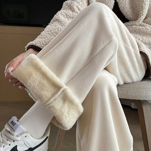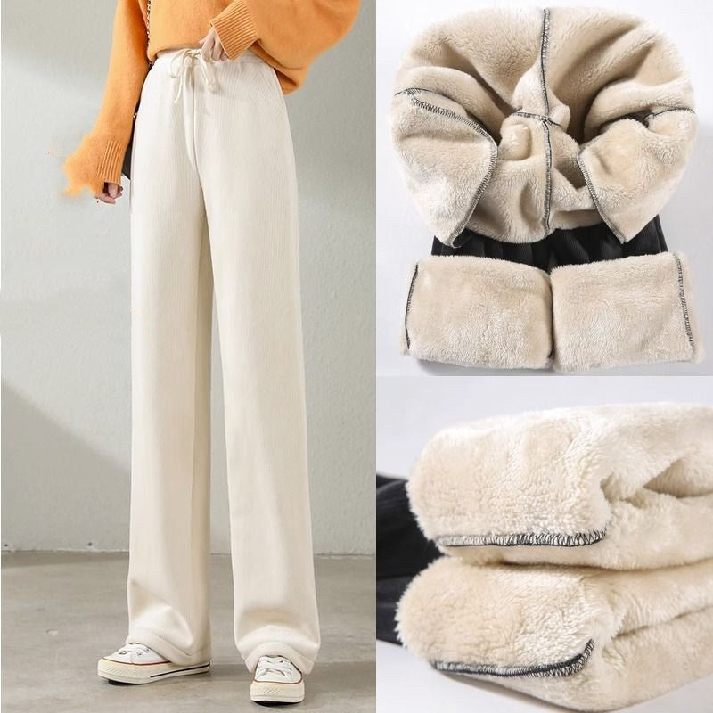 These maternity high-waist wide-leg pants, made of cashmere blend and soft, thickened corduroy, will keep you warm and fashionable this winter. They were made with warmth in mind and have useful pockets for daily convenience, a supportive, high waist that fits well, and fleece lining for extra comfort. These pants, which come in cropped, regular, and extended lengths and are available in apricot, black, and gray hues, combine urban style with a loose harem fit, making them ideal for commuting, informal get-togethers, or comfortable indoor wear.