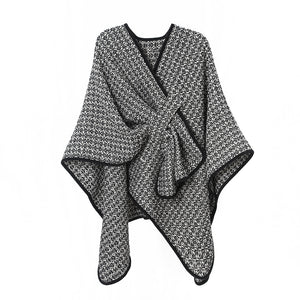 This black tie-dye wool buckle shawl will give your winter ensemble a hint of refinement. Its soft wool texture makes it a stylish and warm addition to any ensemble. Its sophisticated silhouette is enhanced by the exquisite buckle detail, which provides a secure fit. This multipurpose shawl combines comfort, fine craftsmanship, and classic style, making it ideal for cold days or evening events