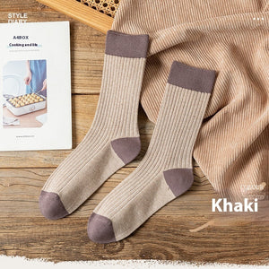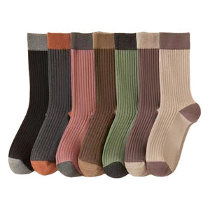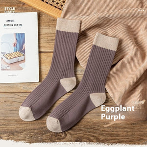 Elevate your everyday style with these versatile Mori mid-calf socks for women. Crafted from breathable polyester fiber with a medium thickness, they provide comfort and warmth across winter, spring, and autumn. The simple solid-color design features subtle contrast bunching and jacquard craftsmanship, adding a touch of charm to any outfit. Available in black, dark gray, pink, purple, khaki, brown, and green, these free-size socks are perfect for youthful, stylish wear
