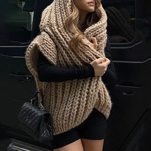 Этот вязаный кардиган с капюшоном добавит уюта вашему образу. Вдохновленный корейской и японской модой, он имеет свободный крой и изготовлен из мягкого полиэстера. В прохладные дни его можно носить поверх водолазок или длинных рукавов благодаря средней толщине и отсутствию рукавов. Этот цельнокроеный кардиган, представленный в тёплых верблюжьих и нежно-абрикосовых тонах, сочетает в себе комфорт, текстуру и беззаботное очарование, создавая простой повседневный образ.