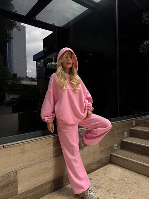 Этот женский флисовый костюм, вдохновлённый американскими и европейскими мотивами, согреет вас и сделает ваш образ стильным. Длинные рукава и тёплый капюшон из мягкого полиэстера обеспечат комфорт в течение всего дня. Яркие цвета — жёлтый, розовый, коричневый и серый — добавят жизнерадостности вашему гардеробу, а свободный крой топа и брюк обеспечит свободу движений. Этот костюм сочетает в себе тепло, комфорт и непринуждённый повседневный стиль, что делает его идеальным для отдыха дома или прогулок.