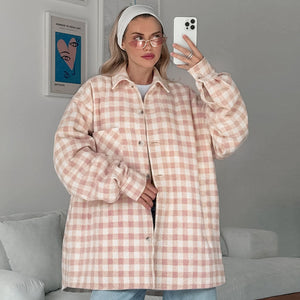 Это простое, но модное клетчатое пальто легко добавит очарования вашему образу. Длина (65 см) и удобный свободный крой делают его идеальным дополнением к любому наряду. Пальто изготовлено из плотного полиэстера. Длинные рукава, удобные карманы и характерная строчка в стиле коллаж делают это пальто отличным вариантом для женщин, которые ценят тепло и непринужденную элегантность, поскольку оно сочетает в себе функциональность и стильный дизайн.