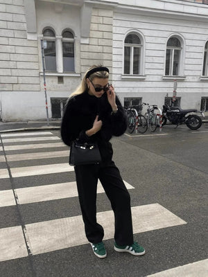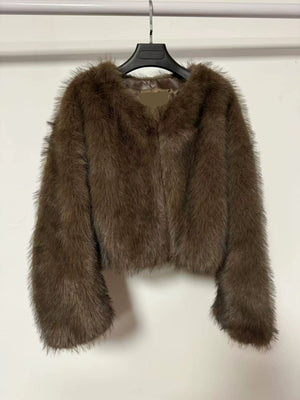 Женское короткое искусственное меховое пальто с круглым вырезом
