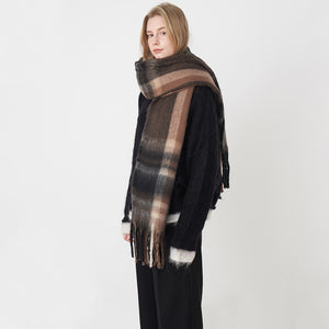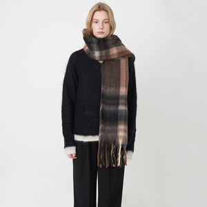 Denna franskrutiga halsduk ger din vinteroutfit en klassisk touch. Tillverkad av smidig polyester med en garnfärgad, vävd finish, ger den mysighet och värme utan att offra stilen. Dess förlängda design, som mäter 228 x 44 cm och inkluderar 38 cm tofsar, möjliggör en mängd olika stylingalternativ. Denna halsduk blandar vintagecharm med modern elegans, vilket gör den idealisk för både vardagliga och professionella ensembler. Den finns i en rad sofistikerade rutmönster, från lila-vitgrönt till den traditionella mjölkkaffebruna färgen.