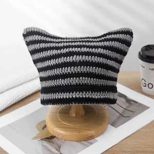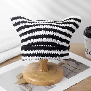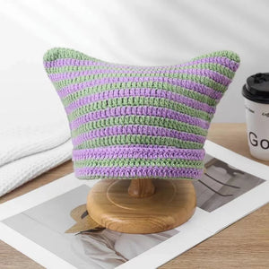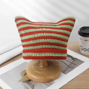 Denna söta stickade mössa med ränder och kattöron kommer att ge en rolig och snygg touch till din höstoutfit. Med sin varma, andningsbara design och mjuka akrylfiberkonstruktion blandar den komfort och slående textur. Den är idealisk för streetstyle, modeinspirerade looks och nätröda modetrender tack vare sin kupolformade krona och slående färgkombinationer. Denna mössa ger karaktär och komfort till vilken avslappnad outfit som helst.