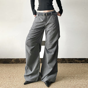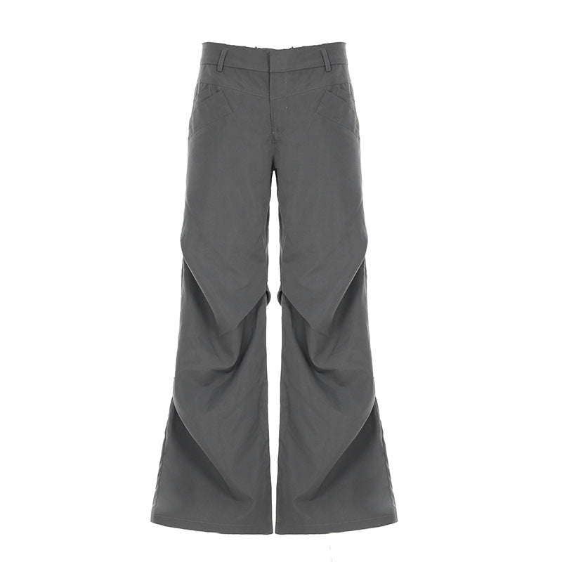 Bär dessa vida byxor med amerikanska och europeiska influenser för att omfamna vintagecharm. De är tillverkade av lätt vävt T400-tyg, har en lös, avslappnad passform och en låg midja för komfort hela dagen. De är perfekta för kreativa looks eller informella sammankomster tack vare de fina veckdetaljerna och collagesömmarna som framhäver en konstnärlig retroestetik. Dessa byxor, som finns i grått och i storlekarna S till L, blandar enkelt klassisk retrostil med komfort.