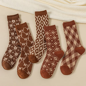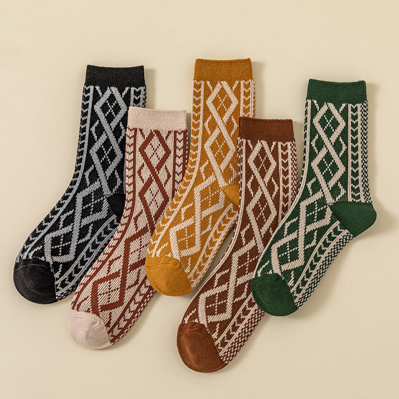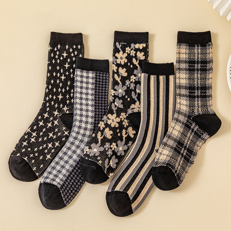 Känn dig bekväm och stilfull med dessa dubbelnålade, dubbelvägsstrumpor till mitten av vaden för kvinnor. Tillverkade av mjuk bomull, erbjuder de utmärkt svettabsorption och luktborttagning för att hålla dina fötter fräscha hela dagen. Finns i en rad eleganta mönster och färger, inklusive Coffee New York, grön romb, svart smiley, svarta ränder, blå romb, kaffevåg och små blommönster, dessa strumpor kombinerar praktiska egenskaper med en lekfull, moderiktig touch för höst- och vinterkläder.
