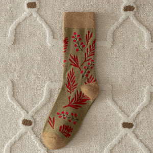 Dessa japanskinspirerade strumpor som når mitt till vaden ger en tidlös retrokänsla till dina höst- och vinterkläder. Tillverkade av mjuk, högkvalitativ kammad bomull erbjuder de värme, hållbarhet och komfort i varje steg. Med charmiga randiga, rutiga och blommiga mönster i jordnära nyanser som grönt, blått, khaki, mörkt kaffe och ljusbrunt, är de designade med halkskydd, antifriktion och luktborttagning för att hålla dina fötter fräscha och mysiga under hela säsongen.