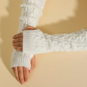 Damullshandskar med halvfinger, stickade vridna vinterhandskar